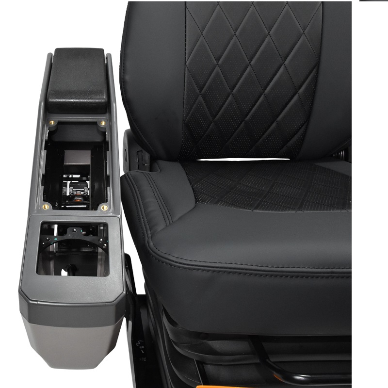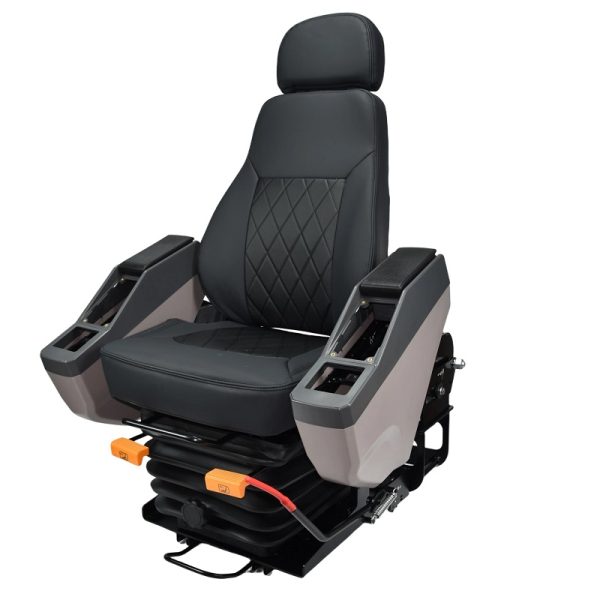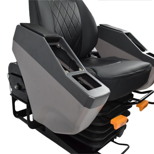 This robust operator seat is designed for heavy construction and agricultural machinery, combining premium comfort with functional versatility. It features a high-back design with lumbar support. The integrated armrest consoles offer dedicated mounting spaces for control levers, while the adjustable suspension system effectively dampens vibrations to reduce operator fatigue during long shifts.